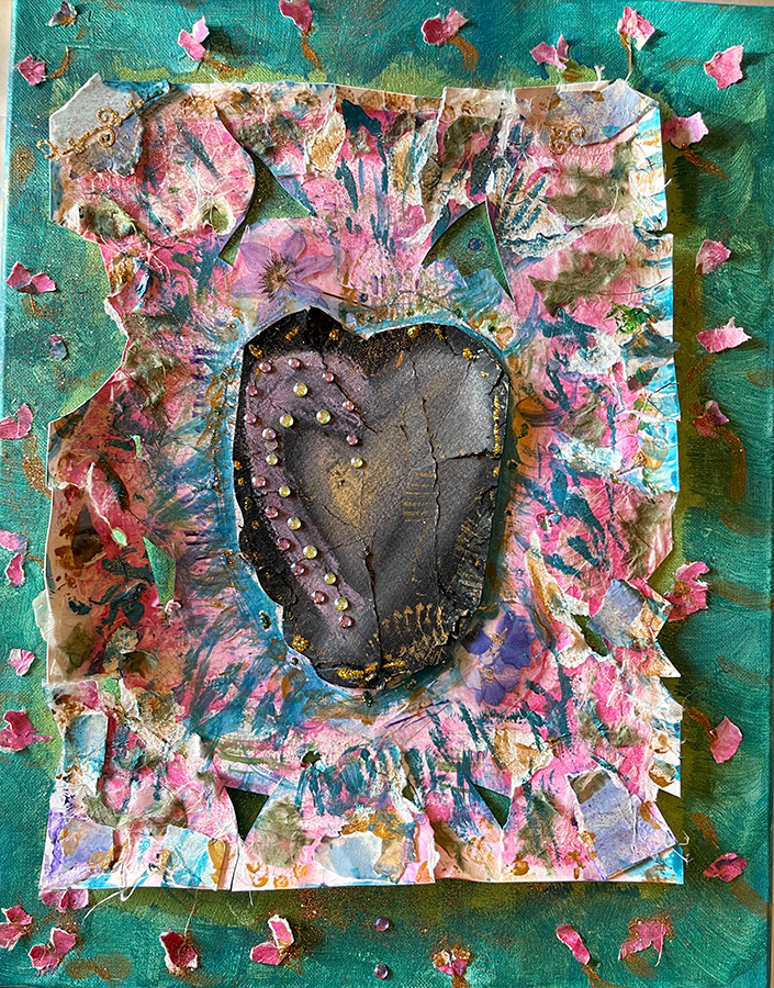 There is no need to believe in or visit a psychic medium to connect with our Loved Ones.  We can create art that is a gateway to presence, bringing forward flow states, where we may experience timelessness, healing and connection. By virtue of its creation, creative practice may also open a door to something unseen. As Swiss Psychiatrist Carl Jung taught, when we call art highly symbolic into being, another door can open—one that connects us to the deeper psyche and the realm of spirit. Through this door, we honor our loved ones, our grief and ourselves.